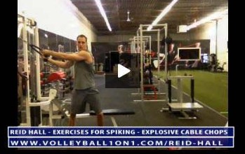 This is video 4 of a 4 part video series on exercises for spiking. The exercise is: Explosive cable chops. This is another great trunk / core exercise for generating power when spiking a volleyball. In the video Reid talks about discussed when the exercise should be incorporated into your workout, how many sets and how many reps.